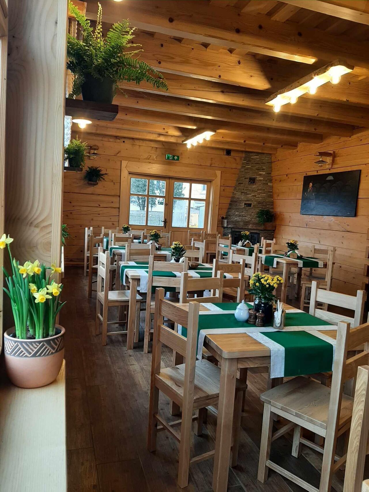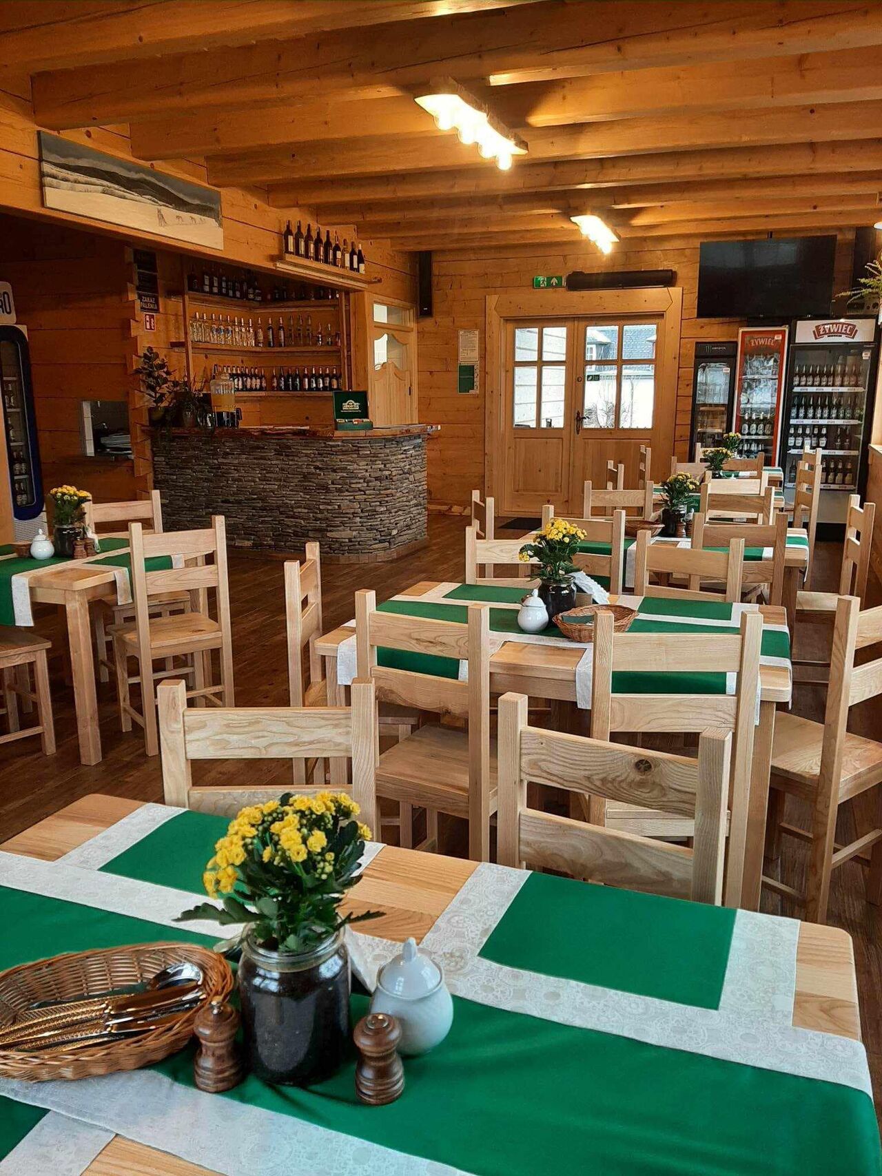 Karczma Waderka zachwyca przytulnym i tradycyjnym wystrojem, który oddaje ducha bieszczadzkiej kultury. Drewniane meble, ręcznie robione dekoracje oraz ciepłe oświetlenie tworzą atmosferę, w której można poczuć się jak w domowej chacie. Wnętrze karczmy jest przestronne i komfortowe, idealne na rodzinne obiady, spotkania z przyjaciółmi czy romantyczne kolacje.